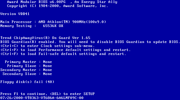 problema é que, caso a seqüência de boot esteja configurada como C: A:, o