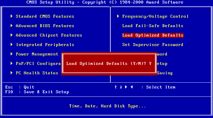 Load BIOS Defaults