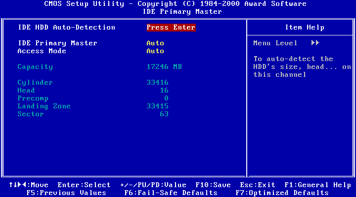 comando Auto Detect IDE em um Setup Award.